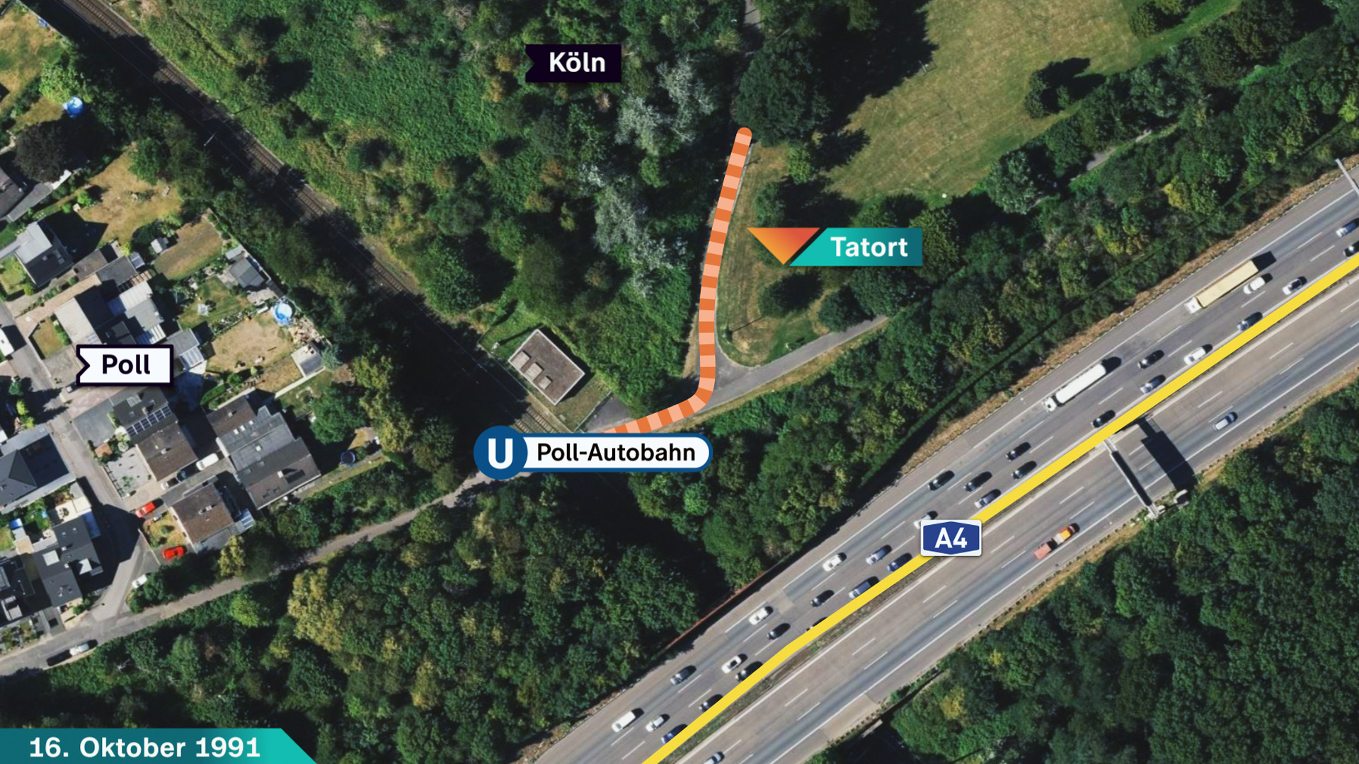 Da es für mögliche Zeugen schwer ist, sich nach so langer Zeit zu erinnern, verweist die Polizei auf zwei Besonderheiten: An der Haltestelle „Poll-Autobahn“ befand sich damals eine Baustelle. Und am Tatabend fand das Fußball-EM-Qualifikationsspiel Deutschland gegen Wales statt. Es endete 4:1.