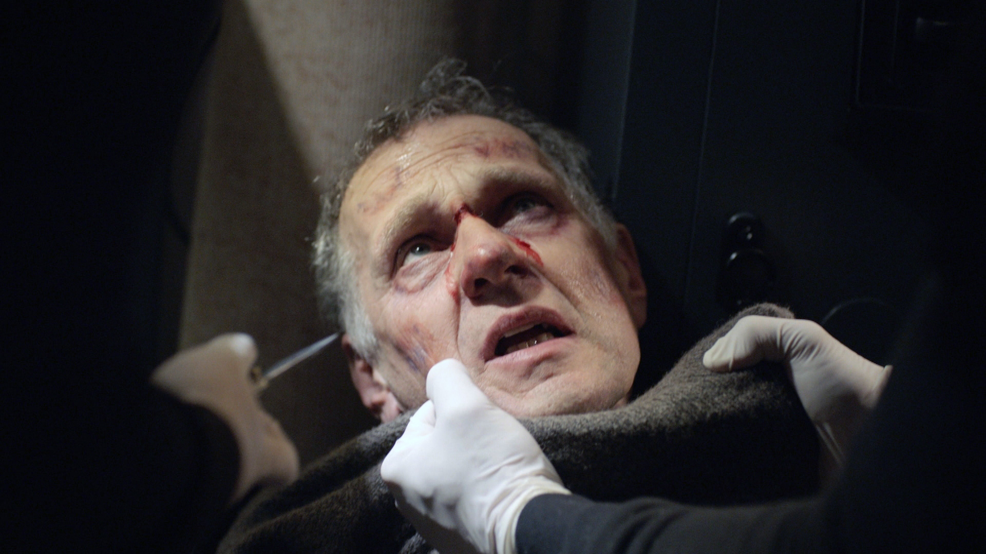 Die Täter schlagen den Mann und drängen ihn ins Haus. Dort maskieren sie sich mit Schlauchschals und zwingen ihn in den Keller. In einem Büro entdecken sie einen Tresor, fesseln ihr Opfer und verlangen den Code.
